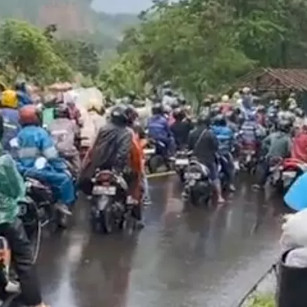 Situasi antrian kendaraan karena longsor dan pohon tumbang di Bandung Barat (Tangkap layar video warga)