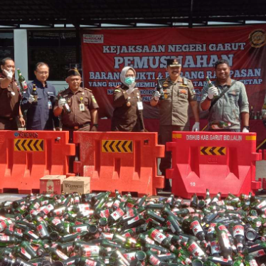 Satuan Polisi Pamong Praja (Satpol PP) Kabupaten Garut melimpahkan 8.443 botol minuman keras (miras) untuk dimusnahkan dalam acara Pemusnahan Barang Bukti yang telah berkekuatan hukum tetap dari Pengadilan Negeri Garut.