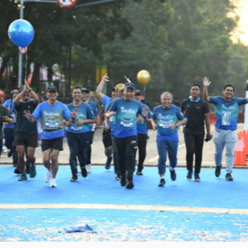 Penjabat Gubernur Jawa Barat Bey Machmudin beserta Ibu Amanda Bey Machmudin melakukan flag off di Jalan Diponegoro, selain itu juga berpartisipasi dalam nomor 7,5 K QRIS Run X.