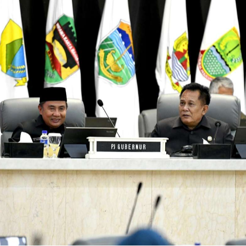 Penjabat Gubernur Jawa Barat Bey Machmudin menghadiri Rapat Paripurna pengumuman usulan calon Pimpinan DPRD Provinsi Jawa Barat masa jabatan 2024-2029, di Gedung DPRD Provinsi Jabar, Kota Bandung, Selasa (1/10/2024).